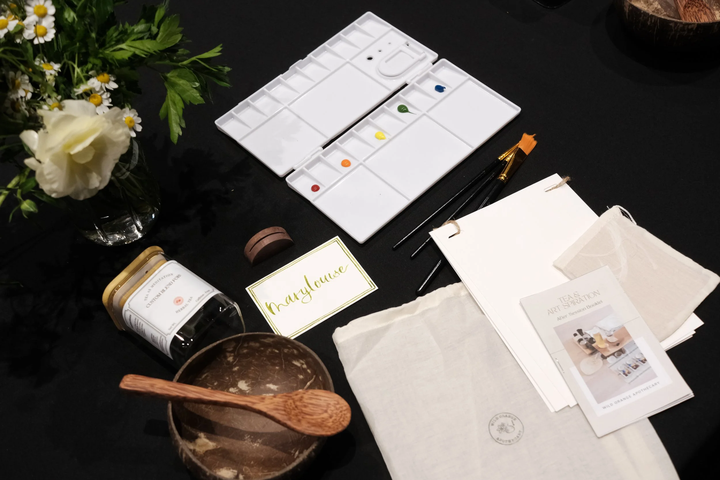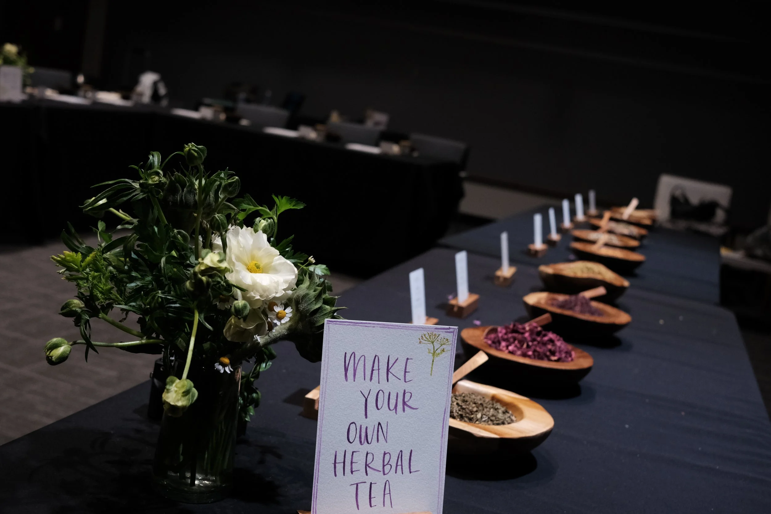 ITINERARY: During our time together, the group went through the 3 different stations which consisted of a 1.) Tea Ceremony with paired tasting, 2.) May Your Own Herbal Tea bar, 3.) Watercoloring Exploration session